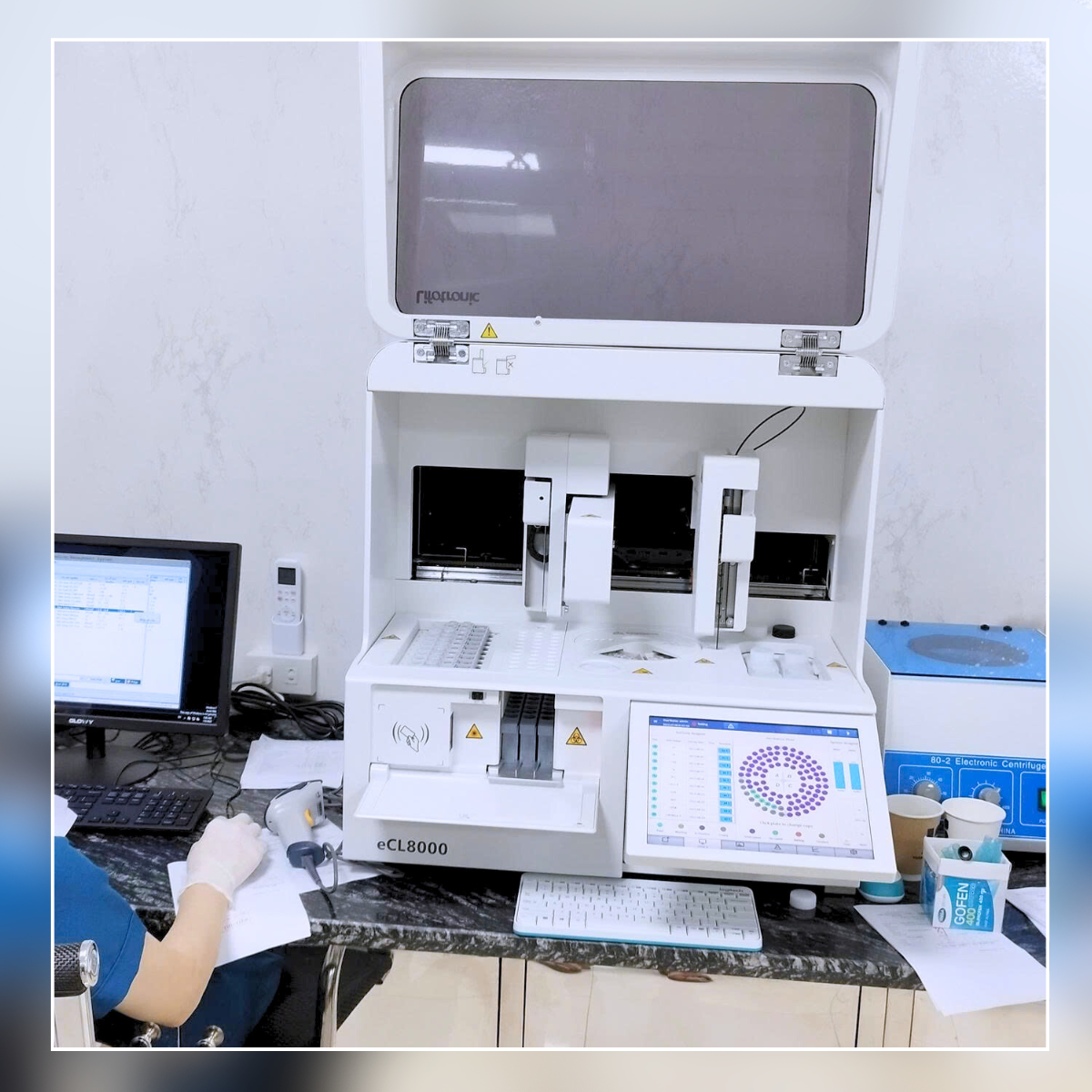 Máy xét nghiệm miễn dịch tự động ECL 8000 (Electrochemiluminescence Immunoassay) là một trong những thiết bị hiện đại ứng dụng công nghệ điện hóa phát quang trong phân tích. Với tốc độ lên tới 86 xét nghiệm/giờ, thời gian trả kết quả chỉ 9 phút, cùng độ chính xác cao, máy ECL 8000 đã trở thành lựa chọn hàng đầu cho nhiều bệnh viện, trung tâm y tế và phòng xét nghiệm.