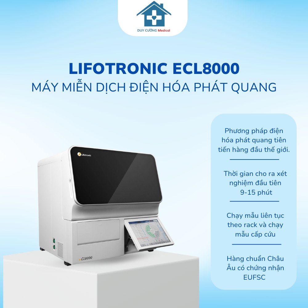 Hiện nay, hệ thống máy xét nghiệm miễn dịch Ecl 8000 và Ecl 9000 của Lifotronic đang là những lựa chọn hàng đầu với công nghệ tiên tiến, độ nhạy cao và khả năng tự động hóa hiệu quả, đáp ứng tốt nhu cầu của các phòng thí nghiệm hiện đại. Liên hệ ngay với Duy Cường để được báo giá và tư vấn cụ thể. Hotline 0986.496.141