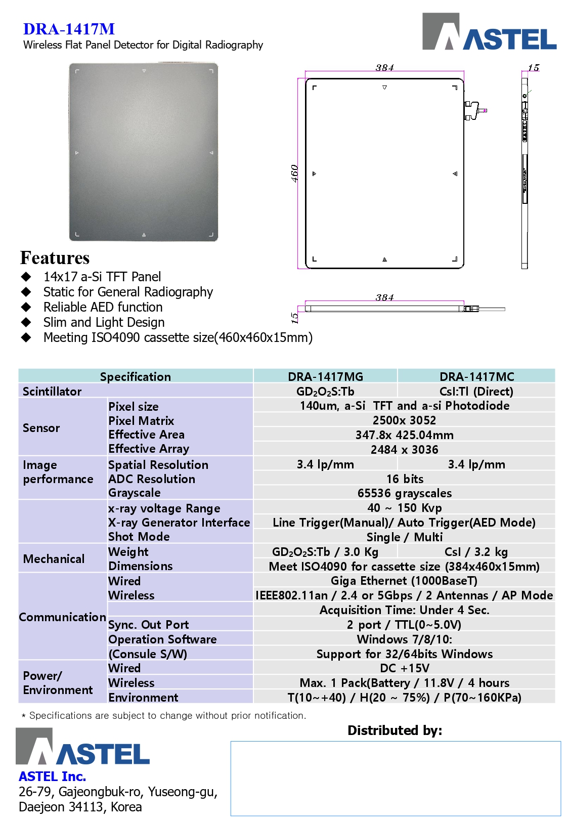- DQE : ≥72% @ 1lp/mm