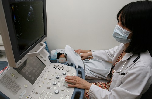 Sử dụng máy siêu âm màu siêu âm tim cho bệnh nhân.